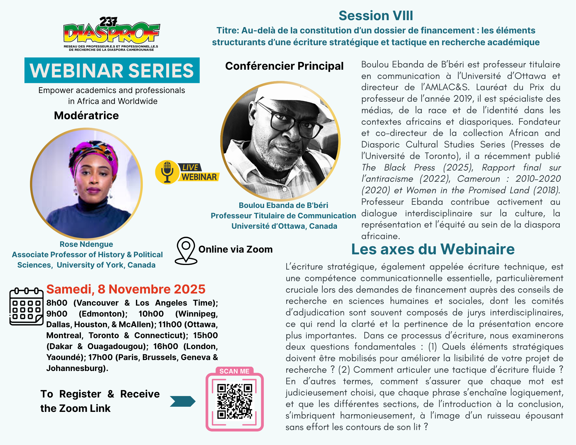 📢 ANNONCE WEBINAIRE Le 237DIASPROF a le plaisir d'annoncer la huitième séance de la série de...